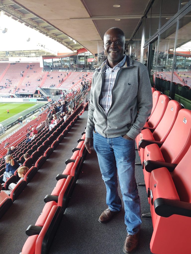Justine Ojambo is weer voor 3 weken in Nederland. Hij heeft een druk programma. Het eerste weekend was gevuld met een gezellige bijeenkomst met de grannies op vrijdag. Op zaterdag was er in de Doopsgezinde kerk in Drachten een bijeenkomst voor sponsoren en op zondag was hij op uitnodiging van stichting De Waterlander in de skybox bij de wedstrijd van AZ tegen Heerenveen.
