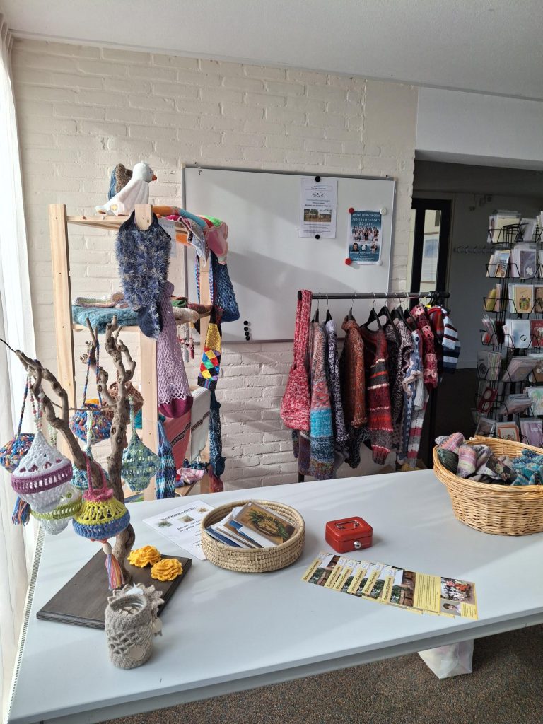 De handwerkclub die verbonden is met de Protestant gemeente Oosterwolde, gaat ons de komende 3 jaar steunen. Deze dames die elke week bijeen komen en allerlei mooie creaties maken , zoals prachtige gehaakte truien, vesten, sjaals en knuffels, verkopen deze in een kraampje bij de kerk en in het winkeltje in het theehuis in Veenhuizen.