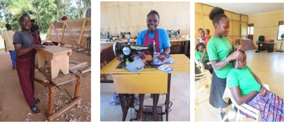 Leerlingen van de verschillende vakopleidingen op het project van PEFO Oeganda