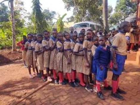 Op maandag 13 oktober ga ik de hele dag op stap met twee gasten uit Nederland. Beiden komen uit het onderwijs en beiden zijn zeer geïnteresseerd in het onderwijs in Oeganda. We nemen de kleinkinderen van granny Kate Nabirye als uitgangspunt. Zes jaar geleden, in 2019, ontmoetten we deze negen kleinkinderen voor de eerste keer. Granny Kate was ten einde raad, er waren nauwelijks inkomsten, de kinderen gingen sporadisch naar school en geld voor de overgangsexamen was er niet of nauwelijks. Tweede kleinzoon Ashiraf droeg bij gebrek aan jongenskleding een oude jurk van zijn oma. Uit schaamte verstopte hij zich achter een pilaar van het huis van de buren. Toch zagen we dat er talent in de kinderen school. Rashid, die toen vijftien jaar was, sprak al goed Engels en hij vertelde dat hij elke dag met zijn jongere broertjes en zusje Engelse boekjes las. We besloten voor de negen kinderen een sponsor te zoeken.