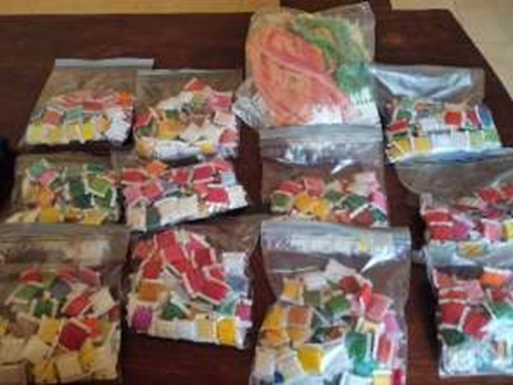 De tien grannies van de emboroidery group hebben weer heel hard gewerkt. Wat is de kwaliteit van hun noeste arbeid de afgelopen jaren verbeterd. De patroontjes worden met een wit potlood aangebracht op de blauwe stof en daarna door de grannies geborduurd. De tien grannies verdelen de te borduren lappen eerlijk over de leden van de groep. Het resultaat is prachtig. In Nederland maken we kleurrijke kaarten van de lapjes stof, die heel goed worden verkocht op markten en tijdens lezingen. De grannies zijn heel trots als we ze complimenteren met hun prachtige werk. Ze zingen en dansen om hun dankbaarheid aan ons te tonen.