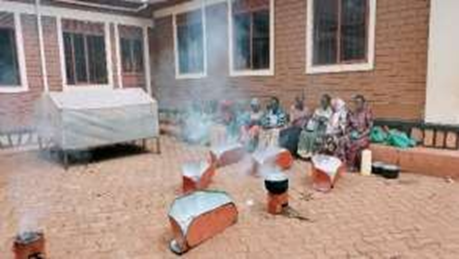 Als alles gesneden is, worden de cookits opengevouwen en in gebruik genomen. Een cookit is een rechthoekige, kartonnen vorm, van boven open en van binnen bekleed met een soort reflecterend zilverpapier. Er hoort een speciale pan bij die in plastic verpakt wordt. Deze wordt op 3 stenen geplaatst. Het geheel wordt in de zon gezet. Er worden ook 2 houtbesparende oventjes aangezet. Deze branden veel zuiniger dan open vuurtjes. Hierop wordt water voor de rijst gekookt.