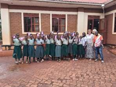 Op 24 oktober 2025 was er weer een les in het maken van uitwasbaar maandverband. Deze keer kwamen er 20 meisjes van P5 (groep 7) van Victoria Primairy School naar de bibliotheek. Dit zijn nog jonge meisjes van zo’n 11, 12 jaar en de meeste van deze meisjes zijn nog niet ongesteld, maar Judith Nafula begon met het vertellen over hygiëne en hoe ze later het uitwasbare maandverband kunnen gebruiken. Dat is beter voor het milieu en ook betaalbaar. Alle meisjes luisterden goed en alle belangrijke zinnen werden klassikaal hardop herhaald.