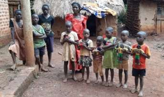 Het oudste meisje volgt dit jaar een naai-opleiding op het terrein van Pefo Uganda, volgend jaar gaat haar zusje deze opleiding volgen. Het meisje dat nu de naai-opleiding volgt en bijna klaar is heeft alvast een naaimachine gekregen, zodat ze aan het werk kan. De andere kinderen zitten nog op de basisschool. Ze hebben ook een nieuw huisje gekregen, extra groot vanwege het grote aantal kinderen.